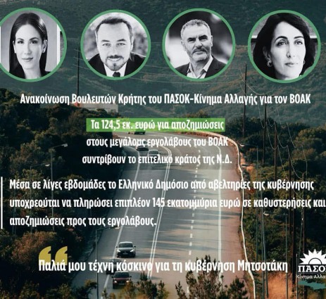 «145 εκατομμύρια ευρώ αποζημιώσεις για τον Β.Ο.Α.Κ. – Η ανικανότητα της κυβέρνησης κοστίζει ακριβά στους πολίτες»