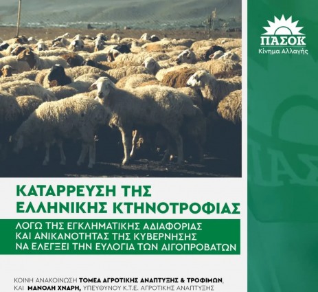 Κοινή ανακοίνωση Τομέα Αγροτικής Ανάπτυξης & Τροφίμων ΠΑΣΟΚ- Κινήματος Αλλαγής και του Βουλευτή Ρεθύμνης Μανόλη Χνάρη υπεύθυνου Κ.Τ.Ε. Αγροτικής Ανάπτυξης